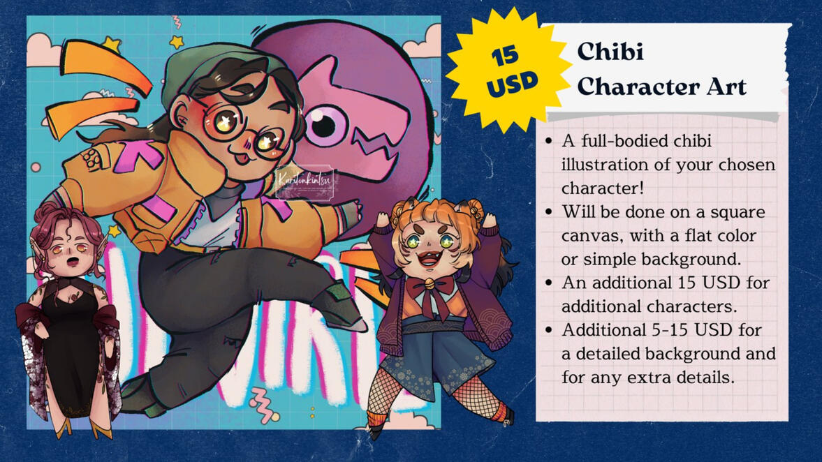 In your message, please tell me your name, the kind of commission you'd like to order, what form of payment will you use. (Paypal, GCash, Paymaya or Ko-Fi!)